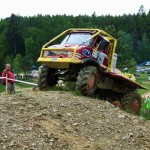 A tuto sekci projeli ke spokojenosti všech. V další sekci se posádce, již s Ondrou, nepovedl taktický manévr a převrátila Unimog na bok,