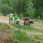 Po této sekci se nám navíc poškodilo řízení, které způsobilo další potíže naší posádce. I přesto se kluci snažili dál a sobotní závod ukončili na 4. místě. Nebyli jsme poslední. Posádka se startovním číslem 230 Honza Šebor s Jirkou Vopaleckým se lapila do bahení pasti v poslední sekci sobotního dne a divácky atraktivně se zahrabala. Z bahna ven se dostali až za pomoci druhého auta. V neděli ráno se kluci vydali do sekcí už na 9 hodinu ranní a věřili, že se jim podaří bodovou ztrátu dotáhnout. Celý den jezdili sice za skoro samé nuly, ale to nebylo moc platné, jelikož takovým způsobem jezdily i ostatní posádky a pořadí se ne a ne hnout.