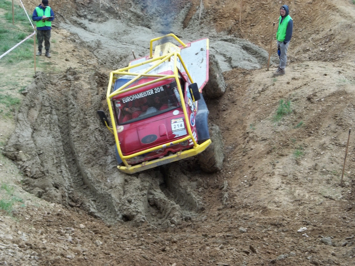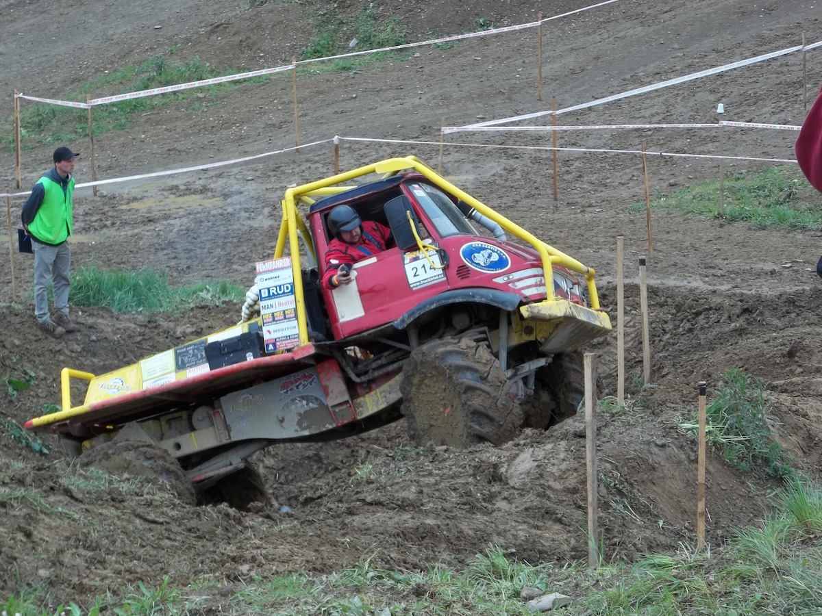 Po obědové pauze se ještě více přitvrdilo! V sekci, kde se jelo i minulý rok si narozdíl od loňského roku Unimog “postavil hlavu” a pořádně kluky potrápil. Při výjezdu do jedné z branek nejprve nevypadla špéra, což zapříčinilo zlomení branky a následně při výjezdu ven ze sekce měl Tomáš co dělat, aby Unimoga nepřevrátil. Naštěstí pro nás, ostatní posádky ve stejné sekci chybovaly také a po odjetí této sekce nevznikla žádná výrazná bodová ztráta, která by kluky mrzela. Do karet nám nahrála především chyba od  Václava Kabourka, který společně s Tomášem Vybíhalem opustil obrysem svého vozu jednu z výjezdových branek ještě před tím, než jí projeli a celá branka se jim počítala jako neprojetá. V následující sekci se již tempo zvolnilo a Tomáš s Ondrou si v ní připsali pouze 16 trestných bodů.