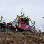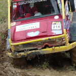 Po pěti minutové prohlídce sekcí, vymysleli Ondra s Tomášem taktiku jízdy, ale když na ně po předešlých čtyřech posádkách přišla řada, byla první sekce již rozblácená a uklouzaná. Přesto před výjezdem ze sekce se jejich počet trestných bodů dal srovnat s ostatními. Ovšem pak přišel ten zrádný konec. Výjezd ze sekce byl na mírném svahu a rozježděné hluboké brázdy po předchozích soutěžících a k tomu vytrvalý déšť, vykonaly své dílo a ze sekce se našim klukům nepodařilo vyjet. Dostali tak pěkný ranec trestných bodů, který se bohužel táhl celý den.
