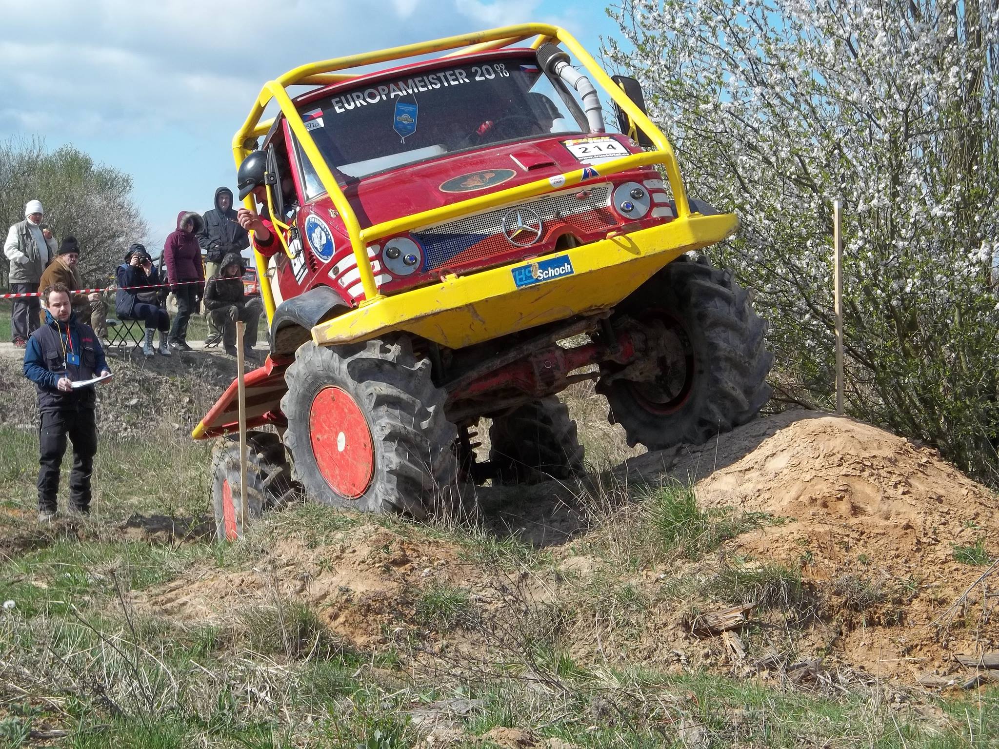 Nyní už však k samotným závodům! Je nutné přiznat že na začátku soutěžního víkendu se ostatní posádky probouzely rychleji z dlouhého zimního spánku a celkově se jim více dařilo. Naše posádka nedělala veliké chyby, avšak né všechno vycházelo tak, jak plánovala. I Unimog byl ještě lehce „zamrznutý“, zejména když v důležité brance nevyskočila špéra a díky tomu nebyla dráha jízdy přesná, což v praxi znamenolo zlomenou branku. Naštěstí po obědové pauze se pomaličku začalo vše měnit a naše posádka postupně mazala bodové ztráty na své soupeře. Po skončení prvního závodního dne byl Tomáš s Ondřejem na průběžné druhé příčce.
